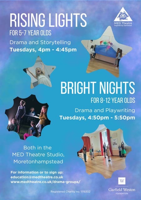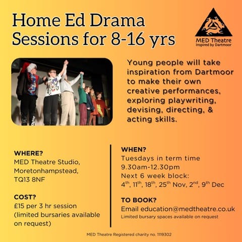 Loads of opportunities for adults and children in the MED Theatre Studio, Moretonhampstead. To book your place on any, email
