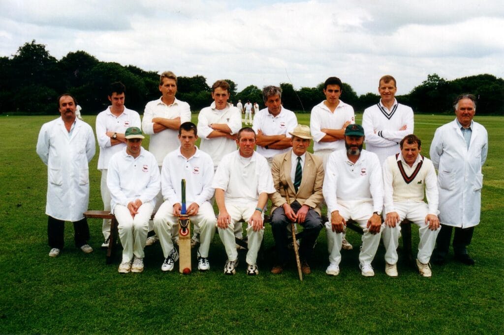 The seasons rolled on. Peter was one of the wicketkeepers, never bowled a ball and wasn’t a batsman to set the game alight with swashbuckling strokeplay but he was reliable and always enthusiastic. He retired as a player after just four summers, with a 1993-6 career average of Played 95, Total runs 1141, Highest score 50, Ducks 8, Average 14.26. One moment he no doubt remembered was scampering a bye off the last ball of the game to tie the 1995 match against Jack Reddaway’s President’s XI. And that highest ever fifty, which included three sixes and was made as part of a then record Belstone total of 236 for 8 against the Elephant’s Nest pub team. In 2000 he became President himself, a position proudly held for the rest of his life. For nineteen years he and Angela arranged the President’s Day match – Belstone won 12, Peter’s XI won 6 and one was tied.