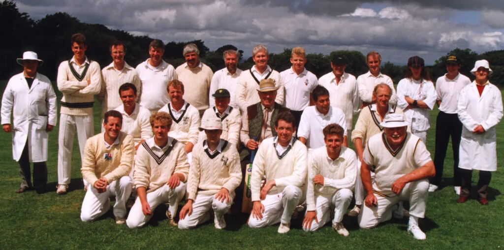 The seasons rolled on. Peter was one of the wicketkeepers, never bowled a ball and wasn’t a batsman to set the game alight with swashbuckling strokeplay but he was reliable and always enthusiastic. He retired as a player after just four summers, with a 1993-6 career average of Played 95, Total runs 1141, Highest score 50, Ducks 8, Average 14.26. One moment he no doubt remembered was scampering a bye off the last ball of the game to tie the 1995 match against Jack Reddaway’s President’s XI. And that highest ever fifty, which included three sixes and was made as part of a then record Belstone total of 236 for 8 against the Elephant’s Nest pub team. In 2000 he became President himself, a position proudly held for the rest of his life. For nineteen years he and Angela arranged the President’s Day match – Belstone won 12, Peter’s XI won 6 and one was tied.
